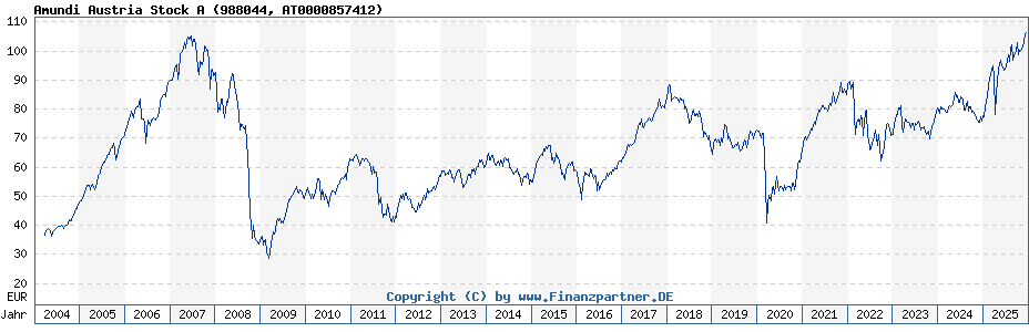 Die genannte Performance betrifft die Wertentwicklung in der Vergangenheit und ist keine Prognose, sondern nur ein möglicher Anhaltspunkt für die zukünftige Rendite. Eine Performance sichert keine Rendite zu und schützt auch nicht gegen Verluste. Die Wertentwicklung von Investmentfonds unterliegt Schwankungen. Der Wert des Amundi Austria Stock Fonds kann bei ungünstiger Entwicklung an der Börse bei Rückgabe auch unter den Anschaffungskosten liegen.