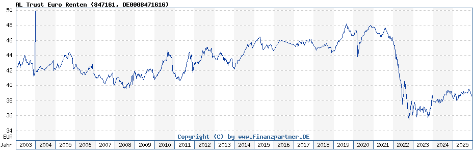 Anlagestrategie: Das Ziel der Anlagepolitik des Fonds ist es, an den Zinserträgen und Kursgewinnen festverzinslicher Wertpapiere teilzuhaben. Zur Verwirklichung dieses Ziels investiert der AL Trust Euro Renten überwiegend in auf Euro lautende verzinsliche Papiere europäischer Aussteller mit hoher Bonität. Daneben können Bankguthaben unterhalten und andere Wertpapiere (z. B. Aktien oder Investmentanteile) sowie Geldmarktinstrumente erworben werden. Die Kapitalbindungsdauer (Duration) der verzinslichen Wertpapieren soll im Regelfall zwischen vier und acht Jahre betragen.