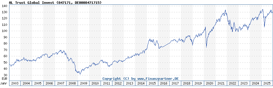 Anlagestrategie: Anlageziel des AL Trust Global Invest ist ein langfristig hoher Wertzuwachs. Das Fondsvermögen besteht überwiegend aus hervorragend gerateten Aktienfonds mit Anlageschwerpunkten in den Regionen USA, Japan und Europa, die entscheidenden Einfluss auf das Wachstum der Weltkonjunktur ausüben. Dem dynamischen Wachstum der Schwellenländer wird durch Beimischung von weiteren exzellenten Aktienfonds, die ihren Anlagefokus auf diese Zukunftsmärkte setzen, Rechnung getragen.