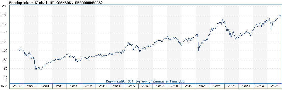 Anlagestrategie: Anlageziel des Fondspicker Global UI ist die Erwirtschaftung einer langfristigen Wertsteigerung. Um dies zu erreichen, investiert der Fondspicker Global UI zu mindestens 51% in Anteile an in- und ausländischen Aktienfonds aussichtsreicher Länder oder Branchen. Je nach Marktlage kann der Fonds auch in Renten- oder Geldmarktfonds angelegt werden.