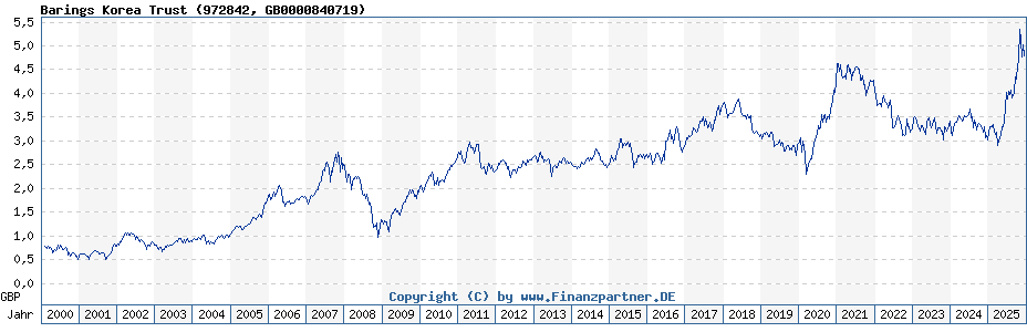 Anlagestrategie: Der Barings Korea Trust investiert in erster Linie in Aktien und aktienbezogene Wertpapiere von Unternehmen die ihren Sitz in Korea haben oder den überwiegenden Teil ihrer wirtschaftlichen Tätigkeit in Korea ausüben oder an den Börsen in Korea gehandelt werden.