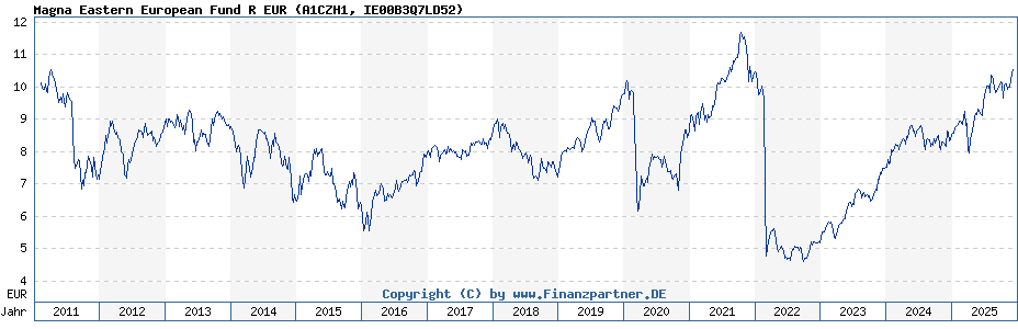 Anlagestrategie: Anlageziel des Magna Eastern European Fund R EUR ist Kapitalwachstum. Der Magna Eastern European Fund R EUR legt vorwiegend in Beteiligungspapieren und Schuldtiteln an, die jeweils im Einklang mit den Vorschriften von Unternehmen in Osteuropa oder im Zusammenhang mit deren Wertpapieren ausgegeben werden und an anerkannten Börsen notiert sind oder gehandelt werden. Der Fonds legt mindestens zwei Drittel seines Gesamtvermögens (ohne Berücksichtigung von zusätzlichen flüssigen Mitteln) in osteuropäischen Wertpapieren an. Anlagen in osteuropäischen Anleihen dürfen nicht mehr als 15% des Gesamtvermögens des Fonds ausmachen.