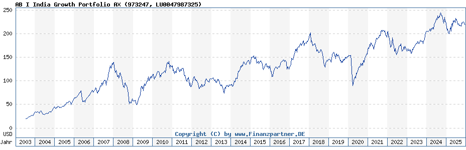 Anlagestrategie: Ziel ist langfristiges Kapitalwachstum. Der AB I India Growth Portfolio AX investiert in der Regel mindestens 80% und nicht weniger als zwei Drittel des Vermögens in Aktientitel von Unternehmen, die in Indien gegründet wurden oder dort einen erheblichen Teil ihrer Geschäftstätigkeit ausüben. Der Anlageverwalter beabsichtigt, Wertpapiere auszuwählen, die überdurchschnittliche langfristige Wachstumseigenschaften bieten.