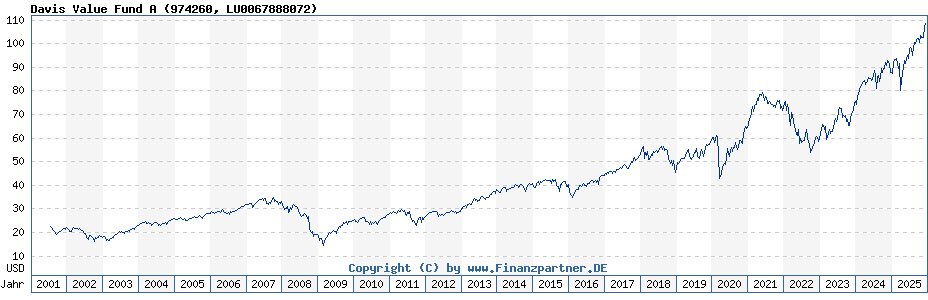 Anlagestrategie: Der Davis Value Fund A investiert in erster Linie in Aktienwerte von US-Unternehmen mit einer Marktkapitalisierung von mindestens 10 Mrd. USD und wird nach der Davis-Anlagedisziplin verwaltet, die darauf abzielt, in Unternehmen zu investieren, die mit einem Abschlag auf ihren Eigenwert gehandelt werden. Der Fonds kann auch in Unternehmen, die nicht US-amerikanisch sind und in Unternehmen mit geringerer Marktkapitalisierung investieren. Es handelt sich um einen flexiblen opportunistischen Ansatz, der einen Bottom-up-Aktienauswahlprozess verwendet und keine Benchmark widerspiegelt.