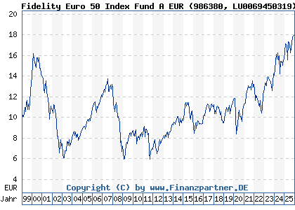 Anlagestrategie: Der Fidelity Euro 50 Index Fund A EUR strebt langfristiges Kapitalwachstum an, indem er die Wertentwicklung des EURO STOXX 50® Index (vor Gebühren und Aufwendungen) nachbildet. Der Fonds investiert, auch durch den Einsatz von Derivaten, in Aktien von Unternehmen, die im EURO STOXX 50® Index enthalten sind. Zur Verwaltung seines Bestands an liquiden Mitteln darf der Fonds neben Geldmarktinstrumenten, Barmitteln und Festgeld auch in Fonds (wie Liquiditätsfonds) investieren.