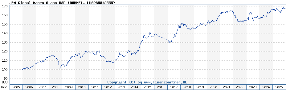 Anlagestrategie: Der JPM Global Macro A acc USD strebt mit seinem global anlegenden Portfolio die Erzielung einer Rendite an, die über einen mittelfristigen Horizont (2 bis 3 Jahre) seinen Geldmarkt-Vergleichsindex übertrifft. Um dieses Ziel zu erreichen, können Derivate eingesetzt werden. Der Teilfonds strebt eine Volatilität an, die um zwei Drittel geringer ist als jene des MSCI All Country World Index (Total Return Net).