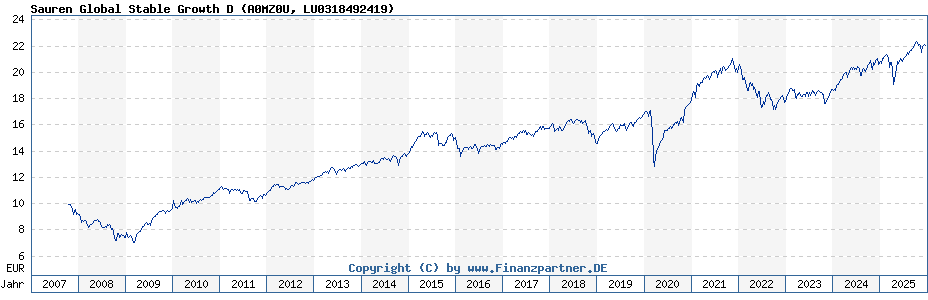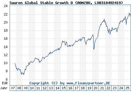 Anlagestrategie: Anlageziel des Sauren Global Stable Growth D ist eine angemessene Wertentwicklung im Verhältnis zu der Entwicklung der globalen Aktienmärkte, welche den Schwerpunkt bilden, als auch zu der Entwicklung der Anleihenmärkte. Der Sauren Global Stable Growth D legt sein Vermögen überwiegend in Investmentfonds an, die schwerpunktmäßig in Aktien investieren, um an der langfristigen Entwicklung der Aktienmärkte zu partizipieren. In untergeordnetem Umfang wird in Fonds investiert, die schwerpunktmäßig in Aktien und Anleihen (Mischfonds), Anleihen oder Wandelanleihen anlegen. Fortlaufend werden mindestens 51% des Vermögens in Kapitalbeteiligungen investiert.