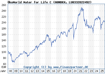 Anlagestrategie: Anlageziel des ÖkoWorld Water for Life C ist die Erreichung von Umweltzielen mit dem Themenschwerpunkt Wasser. Der ÖkoWorld Water for Life C verfolgt das nachhaltige Investitionsziel, global in ausgewählte Unternehmen zu investieren, die nach Überprüfung von ökologischen, sozialen und ethischen Aspekten, geeignet sind, sich durch ihre Produkte oder Dienstleistungen nachhaltig positiv auf die Umwelt oder die Gesellschaft auszuwirken. Mit seinen Investitionen will der Fonds sowohl ökologische als auch soziale Ziele erreichen. Ökologische Ziele haben dabei immer auch positiven Einfluss auf soziale Ziele.