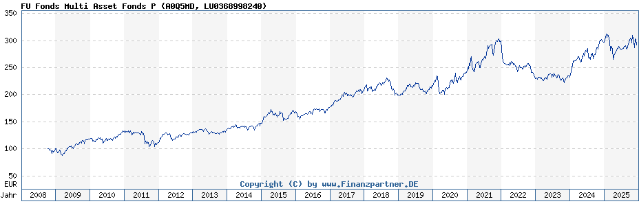 Anlagestrategie: Ziel des Fonds ist es, durch ein aktives, fundamental orientiertes Fondsmanagement einen absoluten Wertzuwachs zu erzielen. Der FU Fonds Multi Asset Fonds P investiert mindestens 60% in Aktien, ADRs/GDRs, Aktienfonds oder Zertifikate auf Aktien. Daneben kann der Fonds in variable und festverzinsliche Anleihen, Geldmarktinstrumente sowie in zulässige Partizipationszertifikate investieren. Der Fonds hat keine geographischen, industrie- oder branchenspezifischen Schwerpunkte.
