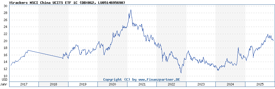 Anlagestrategie: Das Anlageziel besteht darin, die Wertentwicklung des MSCI China TRN Index abzubilden, der die Wertentwicklung der Aktien bestimmter Unternehmen aus oder mit Bezug zu China widerspiegeln soll. Zur Erreichung des Anlageziels versucht der Xtrackers MSCI China UCITS ETF 1C den Index nachzubilden, indem er alle (oder in Ausnahmefällen eine wesentliche Anzahl der) Aktien im Index im gleichen Verhältnis wie der Index erwirbt.