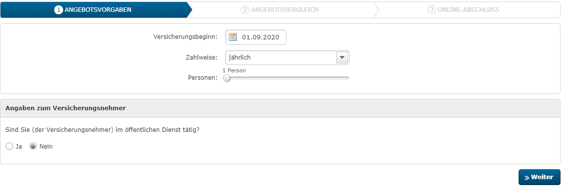 Preisvergleich: Der Rechner erstellt nach Ihren Vorgaben einen individuellen Versicherungsvergleich der Kosten einer Private Unfallversicherung.