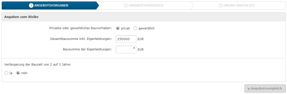 Preisvergleich: Der Rechner erstellt nach Ihren Vorgaben einen individuellen Versicherungsvergleich der Kosten einer Bauherrenhaftpflicht Versicherung.