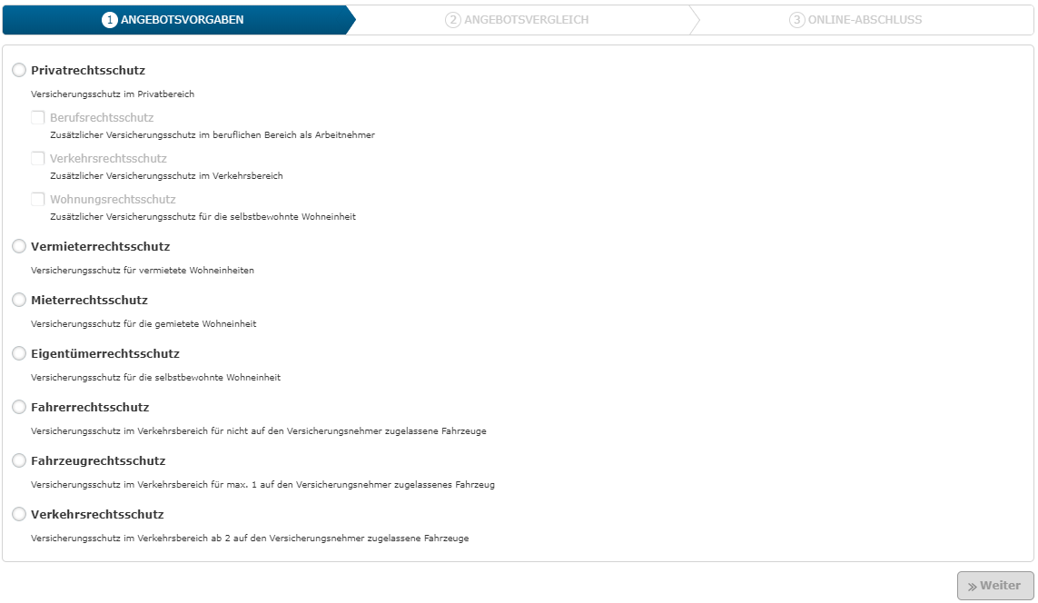 Preisvergleich: Der Rechner erstellt nach Ihren Vorgaben einen individuellen Versicherungsvergleich der Kosten einer Rechtsschutzversicherung.