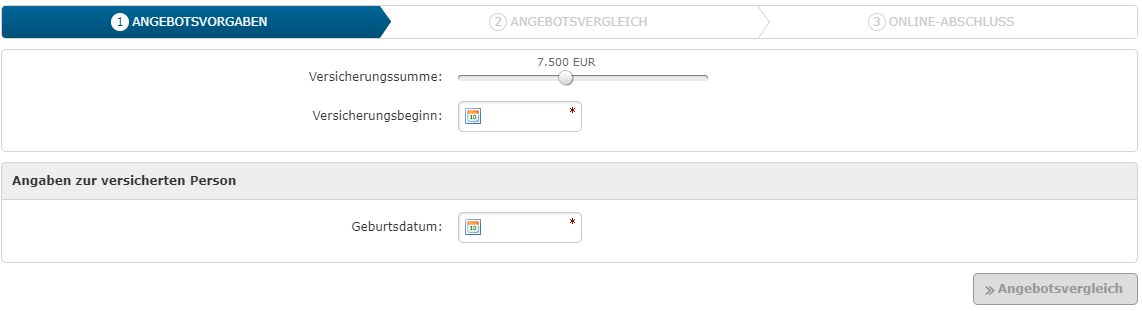 Preisvergleich: Der Rechner erstellt nach Ihren Vorgaben einen individuellen Versicherungsvergleich der Kosten einer Sterbegeldversicherung.