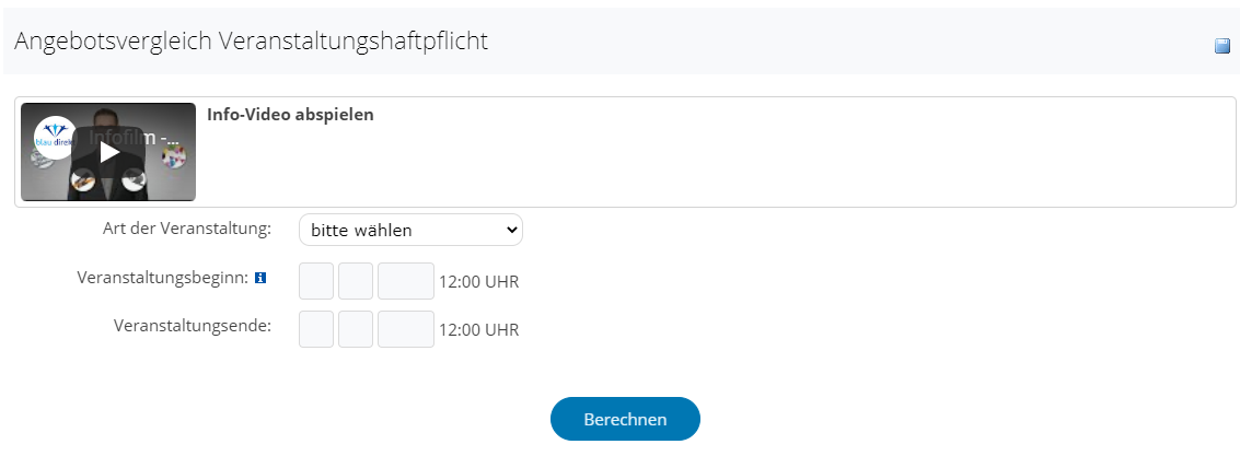 Preisvergleich: Der Rechner erstellt nach Ihren Vorgaben einen individuellen Versicherungsvergleich der Kosten einer Veranstaltungshaftpflicht.