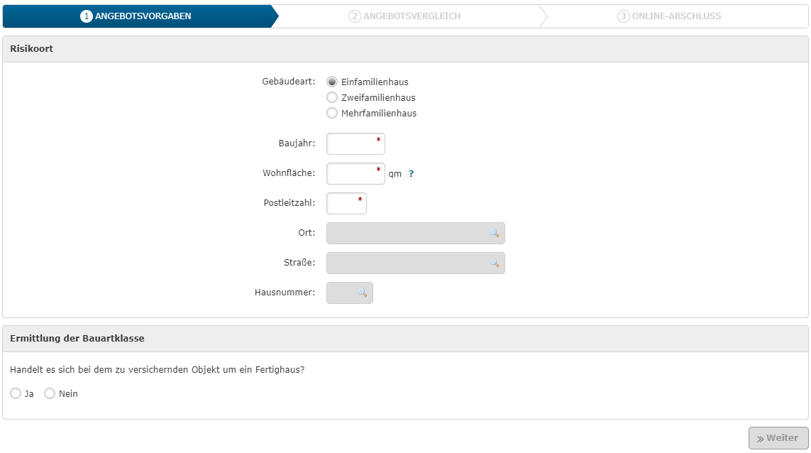 Preisvergleich: Der Rechner erstellt nach Ihren Vorgaben einen individuellen Versicherungsvergleich der Kosten einer Wohngebäudeversicherung.